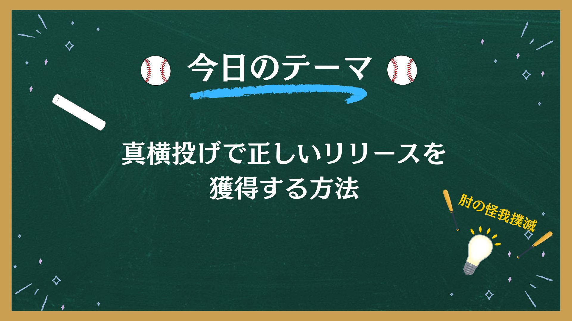今回は、肘の怪我を防ぎ、正しいリリースを身につけるための「真横投げスロー」練習法をご紹介します。